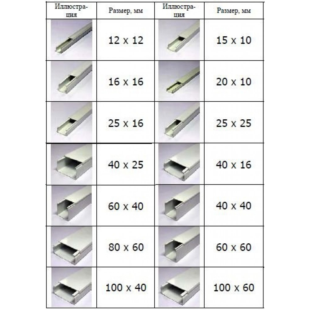 Если вы будете устанавливать магистральное устройство и вести его вдоль потолка, то размеры должны быть больше, чем, допустим, для вертикальных ответвлений (к розеткам и выключателям). В данной ситуации, можно рассмотреть такие модификации, как 100х60 и 40х25, а для небольших отводов - 25х16 и 20х10.