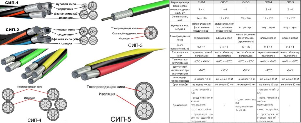 ● 1 — имеют изоляцию из термопластика ПЭТ, оболочка особенно устойчива к ультрафиолетовому излучению. В основном используются для ответвления основных линий, а также подвода электричества к частному дому или другим отдельно стоящем зданиям.