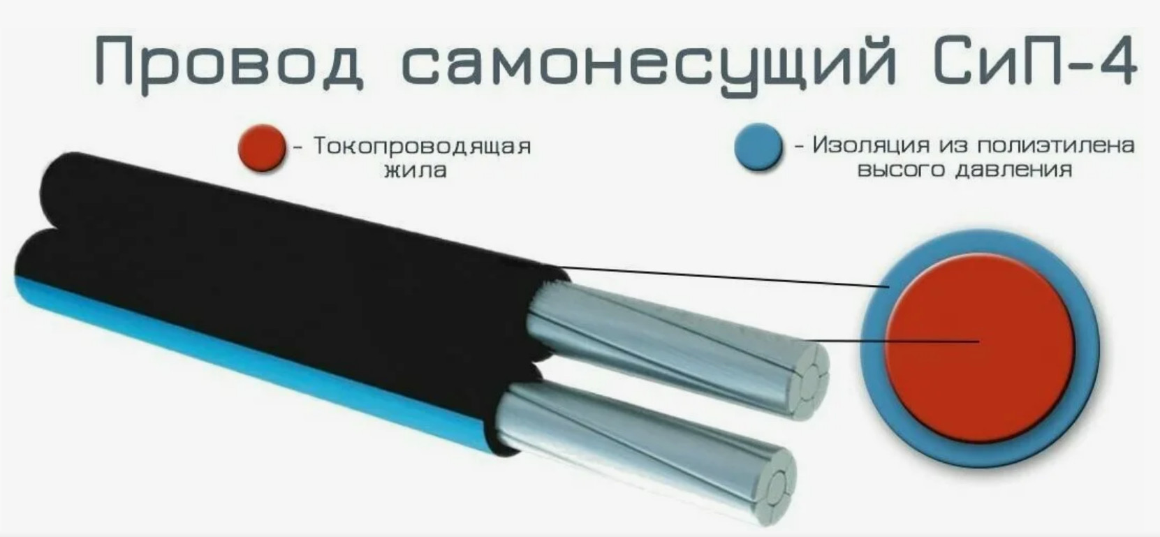 Согласно ГОСТу, провод SIP – это многожильный кабель, предназначенный для воздушных ЛЭП, в котором имеются изолированные жилы и несущий элемент для крепления или подвески провода. Назначение жил: